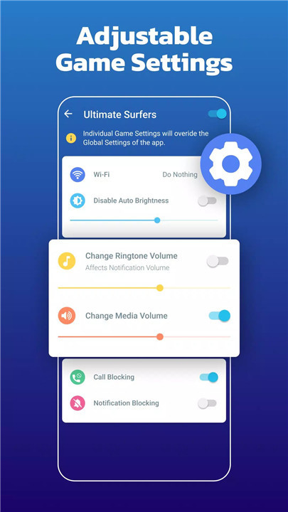 The app allows automatic control over key device settings that impact gaming performance. Auto-brightness can be disabled and adjusted to a preferred level, WiFi state can be managed, and ringtone and media volumes can be optimized for gameplay. These enhancements contribute to consistent visuals, stable connectivity, and balanced audio output.