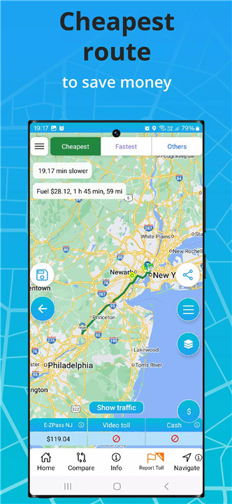 Compare routes to find the fastest or most affordable option. You can avoid toll roads, bridges, tunnels, or express lanes if you prefer, making trip planning flexible to your preferences.