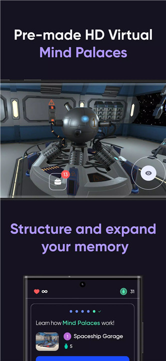 The app’s Virtual Mind Palaces offer an immersive 3D learning environment, allowing users to encode, store, and recall information with ease. These palaces act as structured storage spaces for the brain, eliminating the months of effort typically required to build mental memory frameworks.