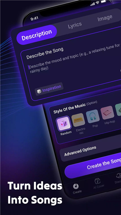 Rythmix uses its advanced AI Music Model to analyze your words, understand emotion and style, and instantly generate a complete track based on your input.