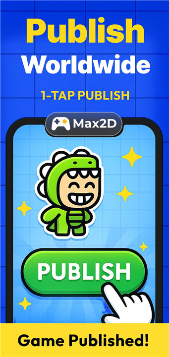 Games can be shared globally with just one click, allowing others to play and review them instantly. Max2D also supports exporting APK and AAB files, making it possible to publish games directly to the Google Play Store and reach a wider audience.