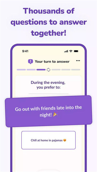 The app includes an extensive library of over 800 questions and quizzes designed to deepen connection and spark conversation. Topics range from daily habits and shared memories to pop culture, food, favorite activities, and sexuality. Each session feels fresh, unexpected, and tailored to different moods and relationship stages.