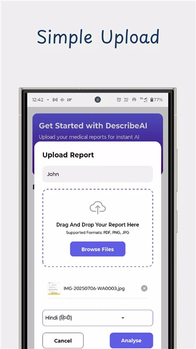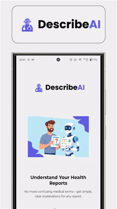 Designed for simplicity, DescribeAI’s interface is intuitive and easy to navigate. The app ensures accessibility for users of all ages and backgrounds, making medical understanding straightforward and stress-free.
