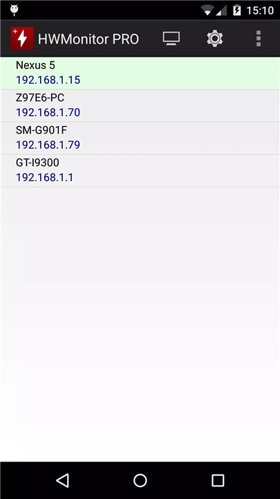 Android Device: Install HWMonitor PRO for Android, enable local monitor in settings, and note the device name and IP.