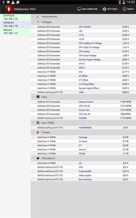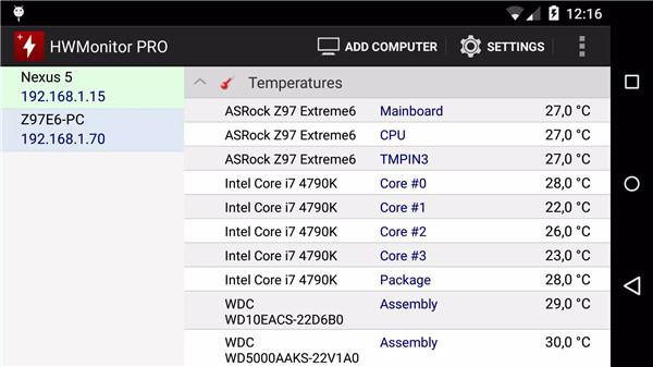 HWMonitor PRO allows up to 10 devices to be monitored from a single Android device. Both Windows PCs and Android devices can be added, providing a unified view of multiple systems for convenient management.