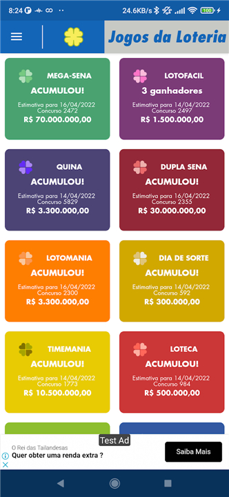 • Comprehensive Coverage: Whether it's Mega-Sena, Quina, Lotofácil, Dupla Sena, Lotomania, Dia de Sorte, Loteca, Timemania, Super Sete, Mais Milionária, or Loteria Federal – we've got you covered.