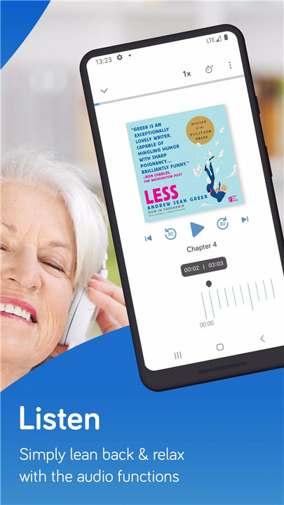 Audiobook playback includes adjustable speed settings and a sleep timer, making it easy to customize listening sessions and relax before falling asleep.