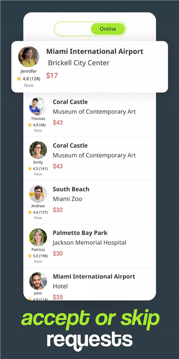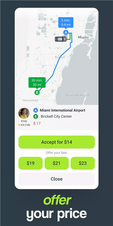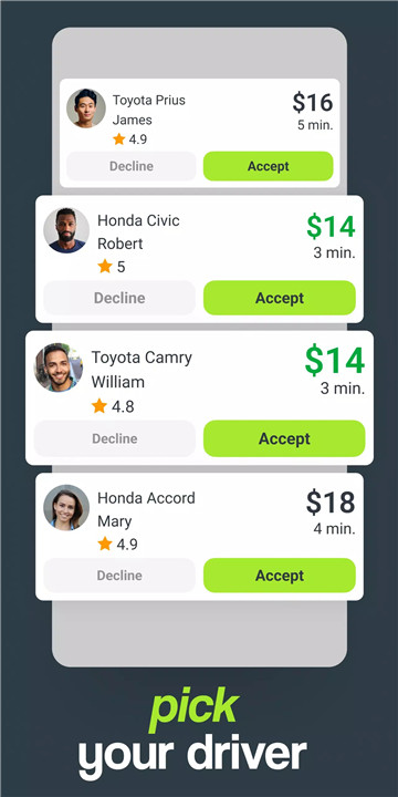 Fair Prices: Set your own fare and choose from drivers who accept your offer, ensuring you get the best deal without hefty service fees.