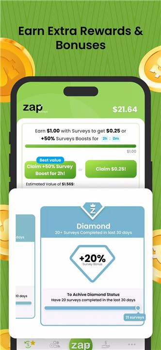 Zapper Rewards is a bonus program that provides extra surveys, higher payouts, daily rewards, and faster redemption options.