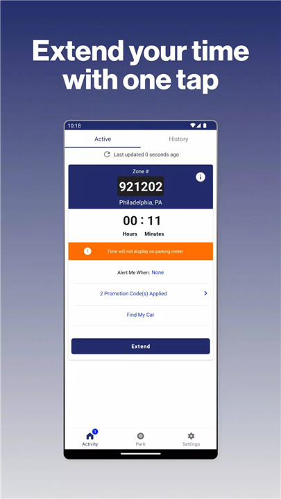 Running late? Add more time from wherever you are—no need to return to your car. The app notifies you before your session expires so you can avoid fines.
