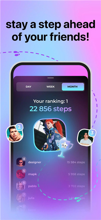 Track your steps and compete with friends in step challenges! Who’s walking the most today? Find out and cheer (or tease) each other on!