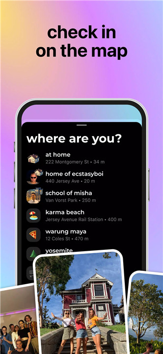 Use Check-ins to share your day, explore cool places, or drop updates from parties, cafes, or anywhere else life takes you. Add photos and stories to keep your map alive with memories.