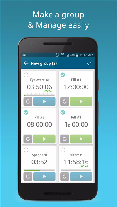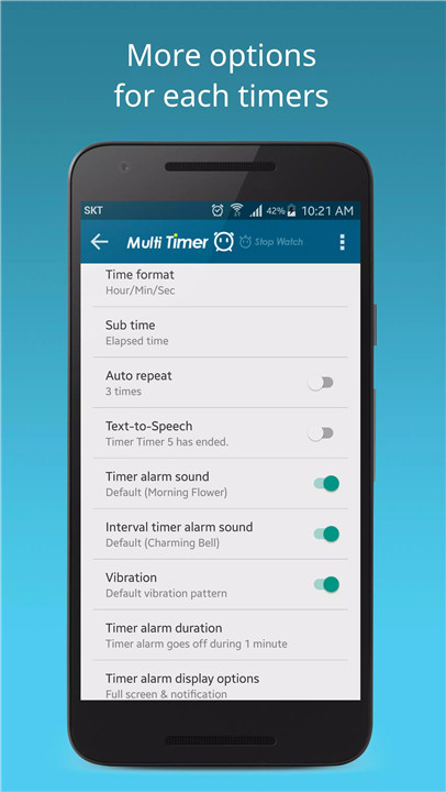 With built-in text-to-speech, each timer can verbally notify you when time is up. This hands-free solution is perfect for situations where visual or manual checking isn’t ideal, such as during workouts or while cooking.