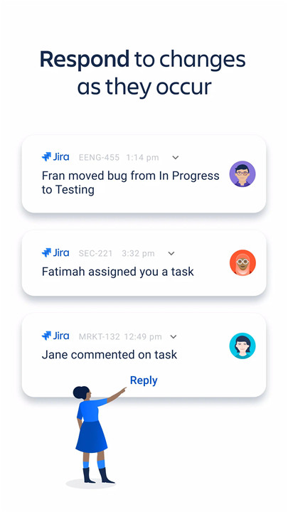 Add new issues, update statuses, leave comments, or assign tasks—right from your phone. View key development details within issues, including Git branches, commits, and pull requests.