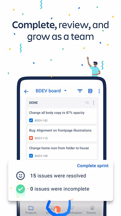 With Jira Cloud on Android or iOS, you can create, update, plan, track, and analyze tasks while on the go. It's perfect for remote work, field teams, or staying productive between meetings. Quickly respond to updates, shift priorities, and keep your projects moving without delay.
