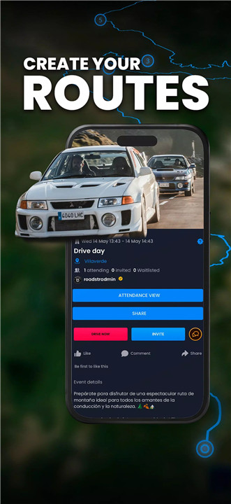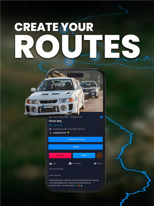 Tired of driving solo? With RoadStr, you can see other drivers live on the map, connect instantly, and plan group drives on the fly.