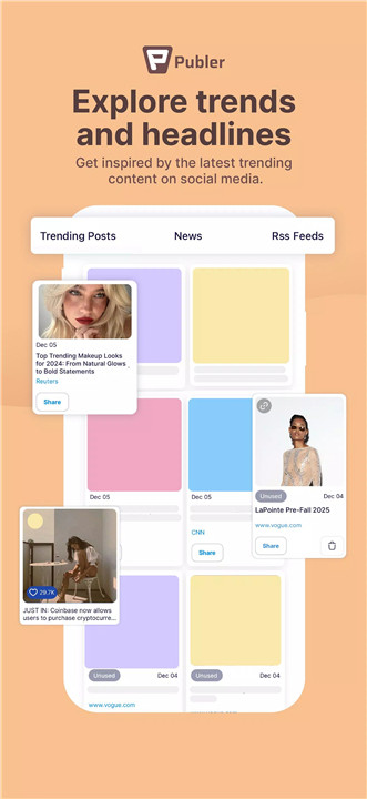 Stay ahead of the latest social trends with Publer’s "Explore" feature. Discover viral content, trending topics, and popular headlines to inspire posts and maintain high engagement with your audience.