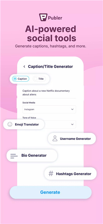 · AI-Powered Social Tools: Generate captions, hashtags, bios, and more, saving time and boosting creativity, all accessible without an account.
