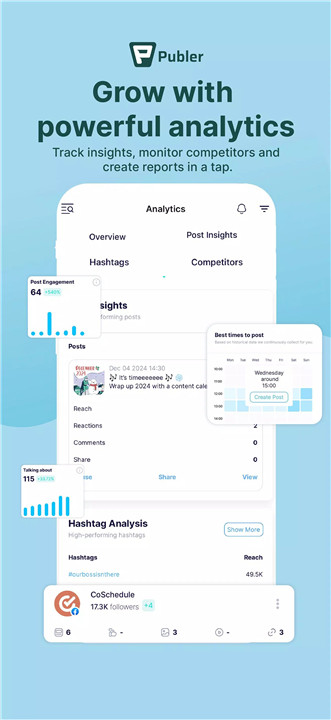 Track performance and refine strategies with advanced analytics. Monitor engagement, assess competitor activity, and generate detailed reports to maximize reach and optimize social media efforts.