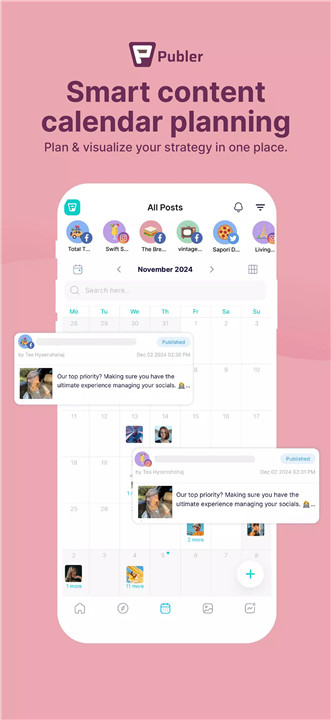 The intuitive content calendar allows for effortless visualization of your social media strategy. Plan, organize, and schedule posts in advance, ensuring consistent, well-timed content delivery across all accounts.