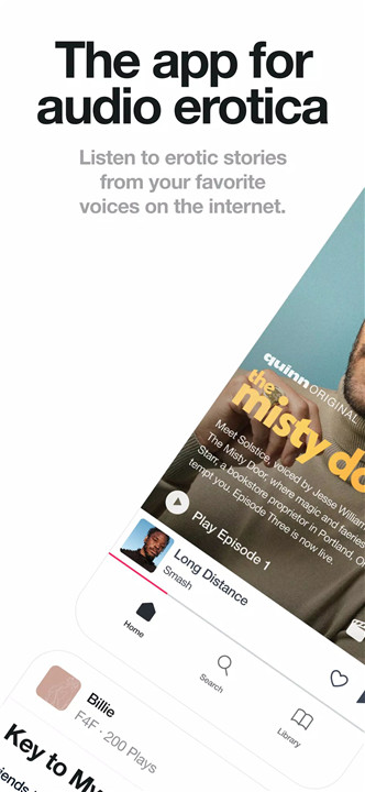 Quinn - Audio Stories is a curated audio platform designed around consent, inclusivity, and creator-driven content. Combining original series, cinematic audio, and user-generated recordings, the app provides a safe listening environment where expectations are clear through detailed content notes and thoughtful tagging. The library caters to solo downtime, couples, and wellness moments such as nighttime wind-downs, meditation, or relaxation routines. Available for Android, Quinn - Audio Stories supports private listening, offline playback, and a personal library for on-the-go enjoyment.