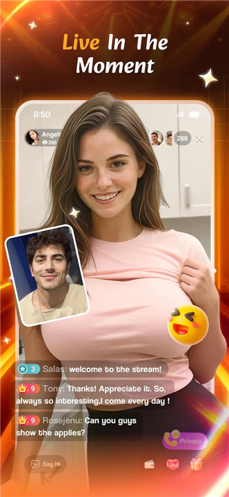 A: The app offers intimate video connections that allow you to engage in high-quality, face-to-face conversations with people from different continents. These seamless interactions are designed to feel personal and meaningful, helping you transform strangers into lifelong friends by sharing stories and smiles in a private, safe environment.