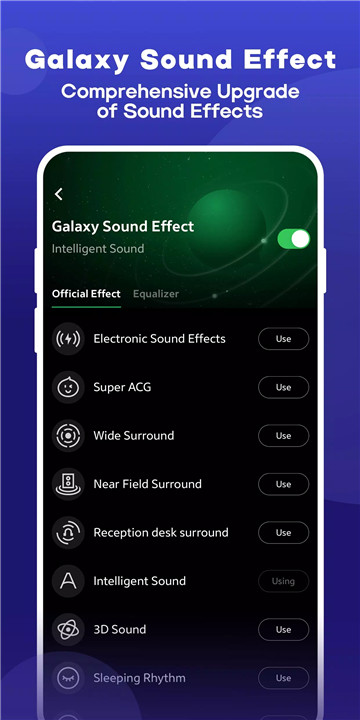 Pro Sound Quality: Experience superior sound with our exclusive Galaxy Sound effects. This feature delivers professional-grade audio, enhancing the way you hear and enjoy your favorite songs.