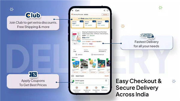 The app provides features to simplify shopping, such as saving favorite products in a Shortlist and reordering previous purchases with one click. Verified customer reviews help in making informed choices. Select pincodes also benefit from same-day or next-day delivery, ensuring essentials reach quickly.