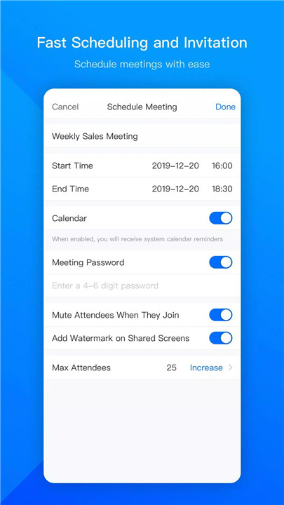VooV Meeting is designed for simplicity and speed. Meetings can be started, joined, or scheduled in just a few clicks across multiple devices, including mobile, tablet, and desktop. Real-time screen sharing, file sharing, and instant messaging enhance collaboration, while comprehensive host controls allow for efficient management of participants and meeting flow.