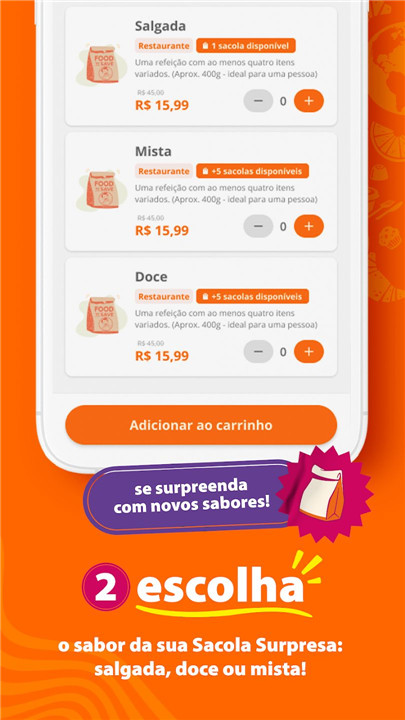 ei, #foodsaver! faça a sua atualização, tem Sacola Surpresa esperando você! se você tem dúvidas, encontrou problemas no aplicativo ou quer enviar sugestões, entre em contato pelas nossas redes sociais. @foodtosavebr