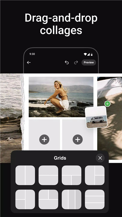 Enhance designs with a wide range of stickers and overlays. From playful to professional, the extensive library allows for effortless customization. Stickers and overlays help transform basic photo collections into polished, standout posts.