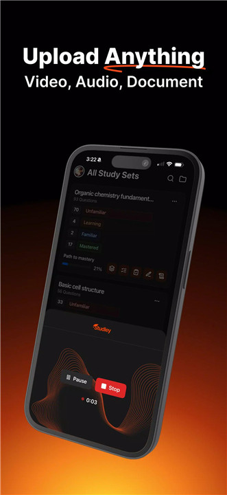 Studley AI can convert nearly any type of learning material into a fully editable Study Set within seconds. Upload lecture slides, textbook chapters, PDFs, YouTube videos, or article links and the platform automatically generates structured study content.