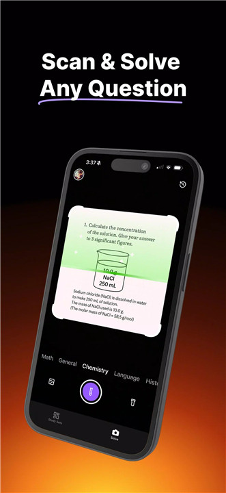 The Solve Tab allows users to upload a photo of a homework problem and receive step-by-step AI explanations to understand how the solution works.