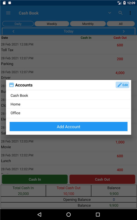 Cash Book is a powerful digital cash management tool designed to simplify financial tracking for individuals, freelancers, and small businesses. It provides an easy and efficient way to monitor daily expenses, income, and overall cash flow, combining the functionality of a personal expense tracker, business cash register, and ledger account book in a single app.