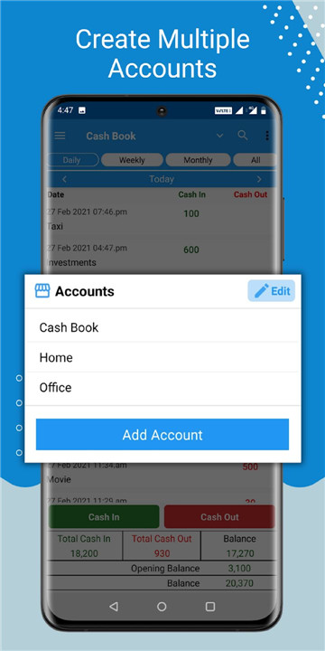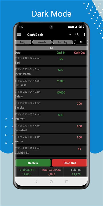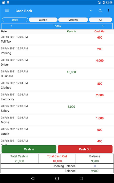 Daily cash transactions can be logged in seconds with just a few taps. This feature saves time while ensuring that records are accurate and up to date.