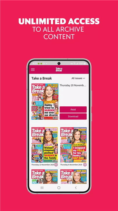 One of the standout features of Take a Break is its captivating real-life stories. Each issue brings fresh stories, filled with raw emotion, humor, and wisdom. With the app, you can access both the latest issues and a full archive of past editions, each one bringing new perspectives and unforgettable stories.