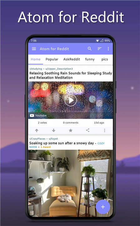 Atom for Reddit is an unofficial, feature-rich Reddit client designed for fast, smooth browsing with built-in media previews, customization options and powerful search tools.