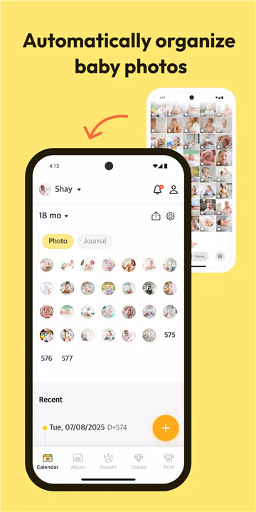 No more scrolling endlessly through your camera roll. Babyfolio automatically organizes your photos by date and month, making it simple to navigate your baby’s journey. Just upload your photos, and Babyfolio handles the rest.