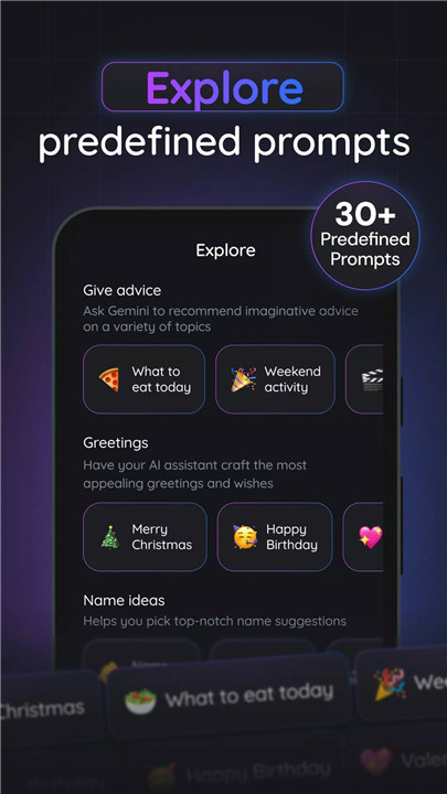 Stuck on how to phrase something? Choose from an ever-growing library of categorized prompts—great for generating names, writing emails, making decisions, or learning something new.