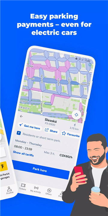 Citymove enables secure parking payments across all residential zones in Prague, including dedicated support for electric vehicles. Multiple number plates can be saved within the app, along with descriptions or images of vehicles for easy identification.