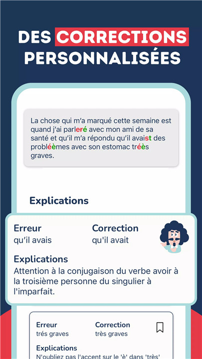 Regain confidence in your French writing with Français sans Fautes, the advanced French grammar app designed for learners of all ages. No need to dread complicated grammar rules or long study sessions — with personalized lessons powered by artificial intelligence, Français sans Fautes fits seamlessly into your daily routine.