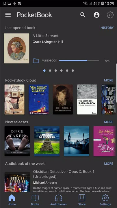 Audiobook and Audio File Support: Not only does PocketBook Reader handle eBooks, but it also supports audio files in MP3 and M4B formats. You can listen to audiobooks and take notes simultaneously, enhancing your listening experience. The built-in Text-to-Speech (TTS) engine is another great feature, as it allows the app to read text files aloud. If the default TTS isn’t to your liking, you can replace it with another from the Play Market.