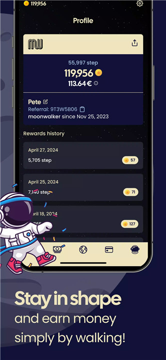 Moonwalk app tracks daily steps and converts physical activity into earnings. Every step contributes to accumulating rewards, making walking more motivating and goal-driven. Whether it’s a short stroll or a long walk, activity is continuously monitored and transformed into virtual currency that can later be exchanged for cash.