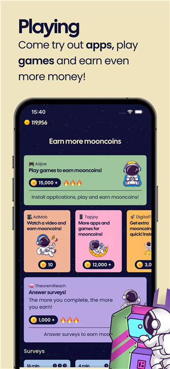 Yes. Mooncoins can also be earned by testing apps, completing surveys, and watching videos.