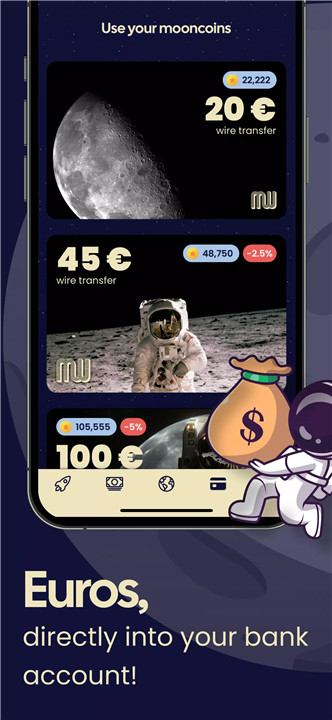 Mooncoins are the app’s virtual currency and can be redeemed for real money after being accumulated through activities.