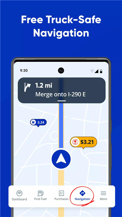 Use the Navigation tab to enter your destination or route directly to the next discounted fuel stop.