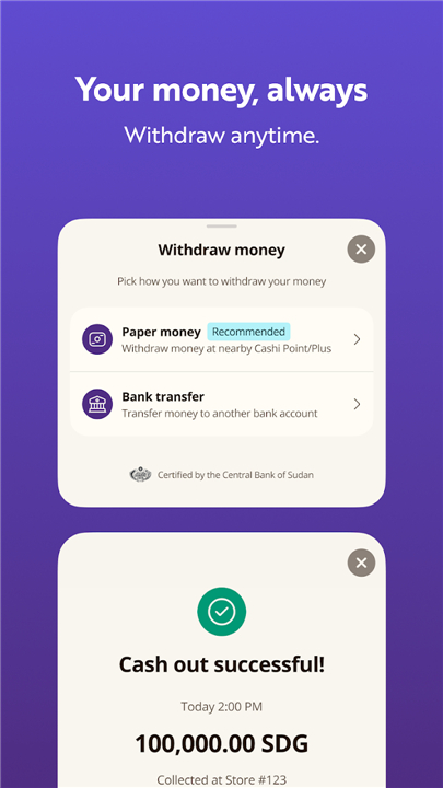 • MyCashi continually integrates additional payment options, such as merchant payments and other digital financial transactions, meeting the dynamic demands of the Sudanese market.