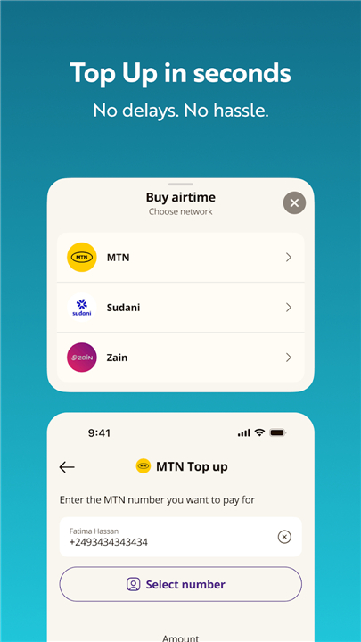 • Instantly top up your mobile phone credit or that of family and friends for various telecommunication networks across Sudan, ensuring uninterrupted connectivity and communication.