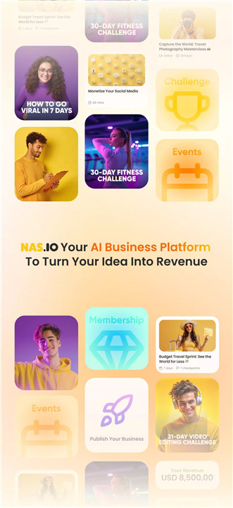 Nas.io is a platform for launching digital businesses. Anyone—creators, professionals, students, or parents—can use it to sell products, host events, or build communities.