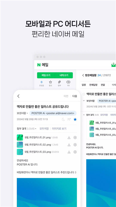 The NAVER Mail app is designed for seamless email management on Android devices running OS 9.0 and higher. It offers smart organization, enhanced writing tools, and advanced security features, making it easy to manage personal and work emails efficiently. The app supports both NAVER accounts and frequently used external accounts such as Gmail and Outlook, providing a centralized hub for all email communications. .
